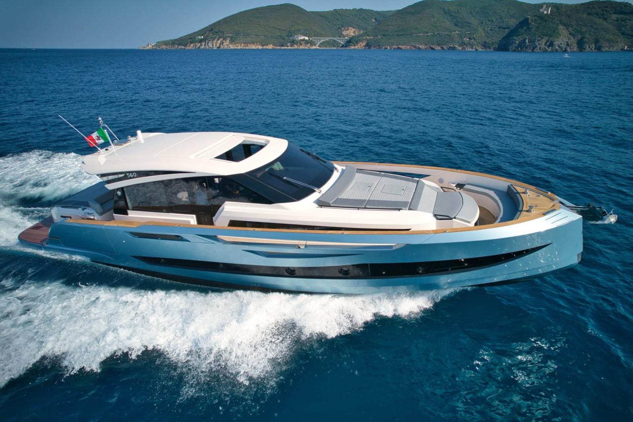 Le Cayman 560 SEDAN incarne l’élégance italienne et la performance maritime. Ce yacht de 17,16 mètres combine design raffiné, confort intérieur et technologies de pointe. Sa ligne moderne, son vaste salon lumineux et ses aménagements personnalisables en font un modèle idéal pour les croisières côtières ou les escapades hauturières, dans un style résolument contemporain.